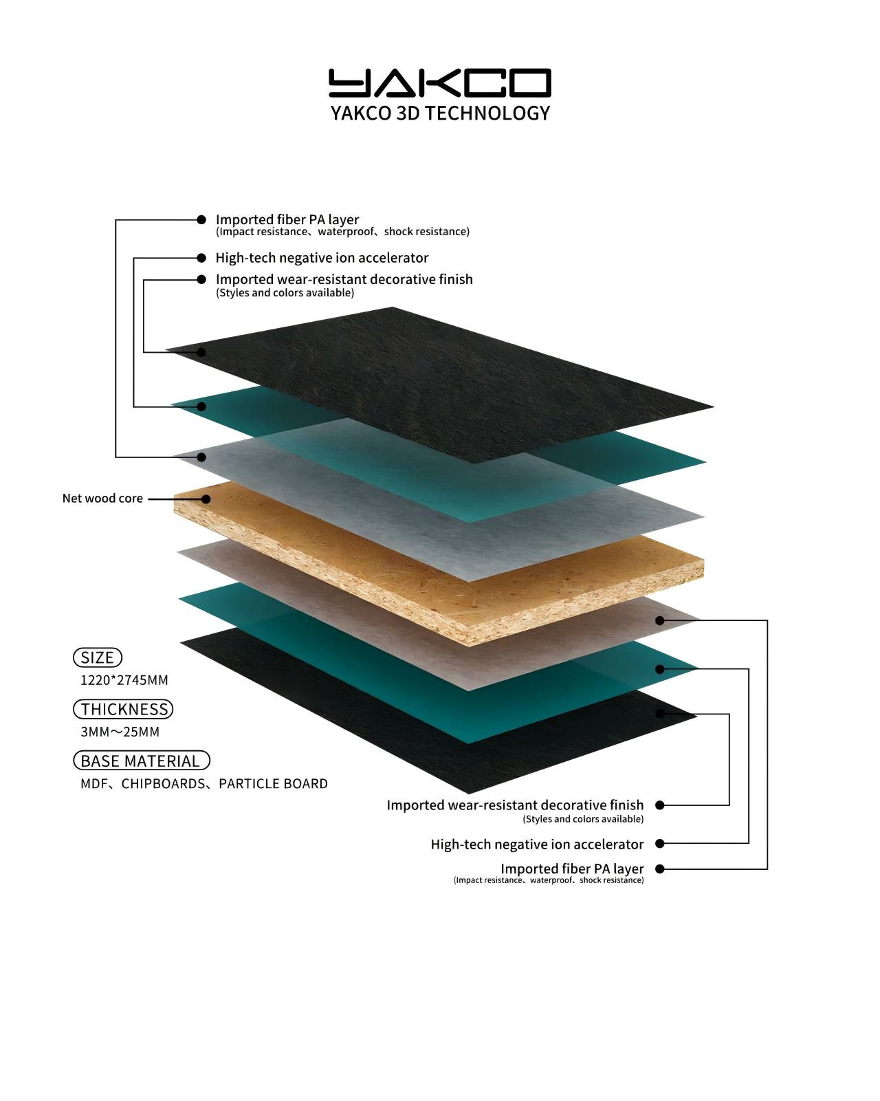 Kinerja lingkungan yang unggul: Yake memperhatikan keramahan lingkungan pada produknya. Panel dekoratif 3D mengadopsi bahan dan proses ramah lingkungan dalam proses produksi, memenuhi standar lingkungan yang tinggi seperti standar nasional ENF yang baru dan standar pengujian bintang F-4 Jepang, memberikan konsumen bahan dekorasi dalam ruangan yang sehat dan aman.
